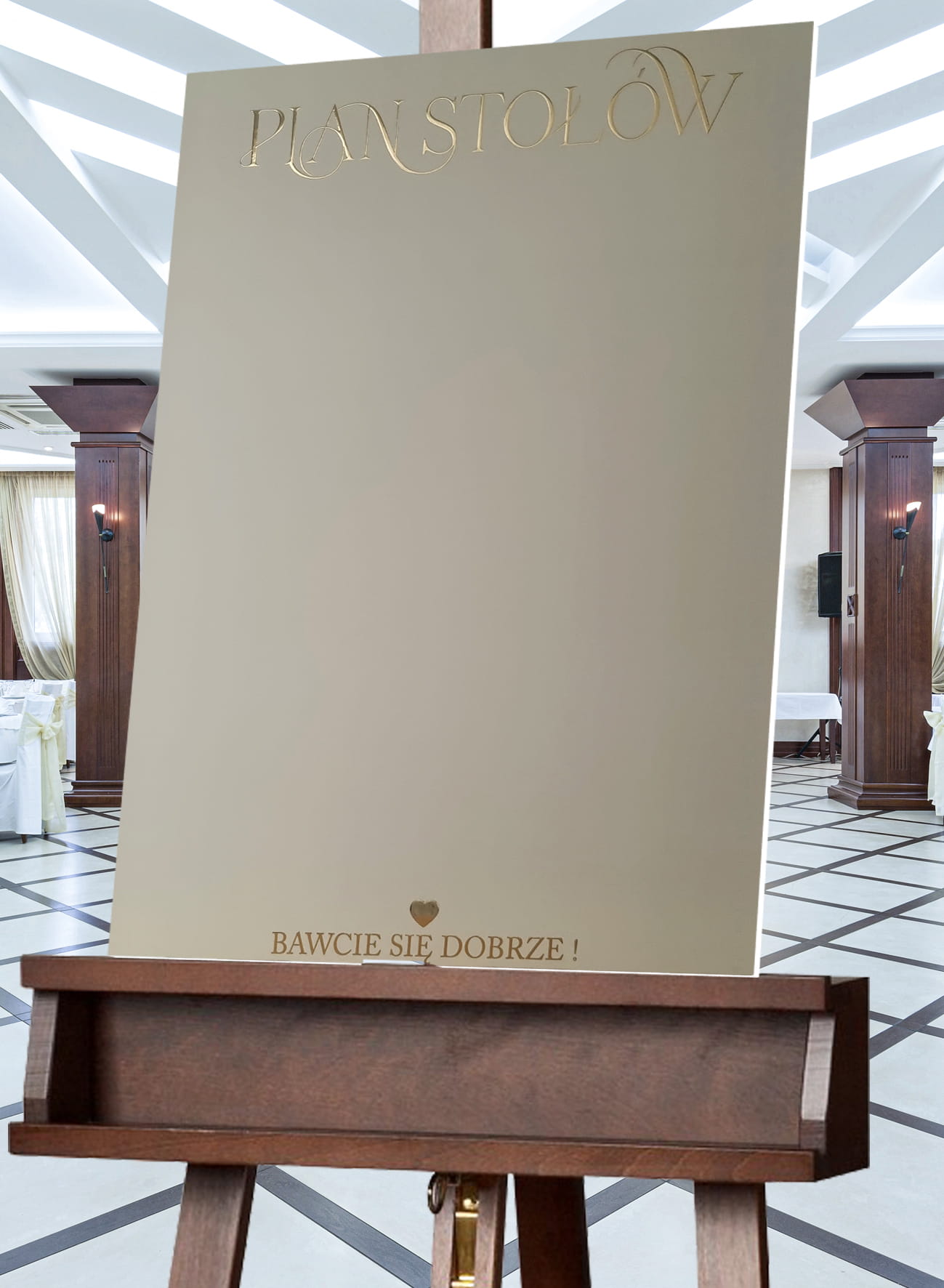 Jako jedyna w Polsce firma, oferujemy piaskową tablice z planem stołów wykonaną na pcv 5mm o wymiarach 70 x 50 cm wykonaną w technologii druku 3D złotą folią. Dbamy o każdy szczegół, w czym wspiera nas profesjonalny i zaawansowany technologicznie sprzęt. Dzięki temu stworzona przez nas tablica wygląda bardzo estetycznie.