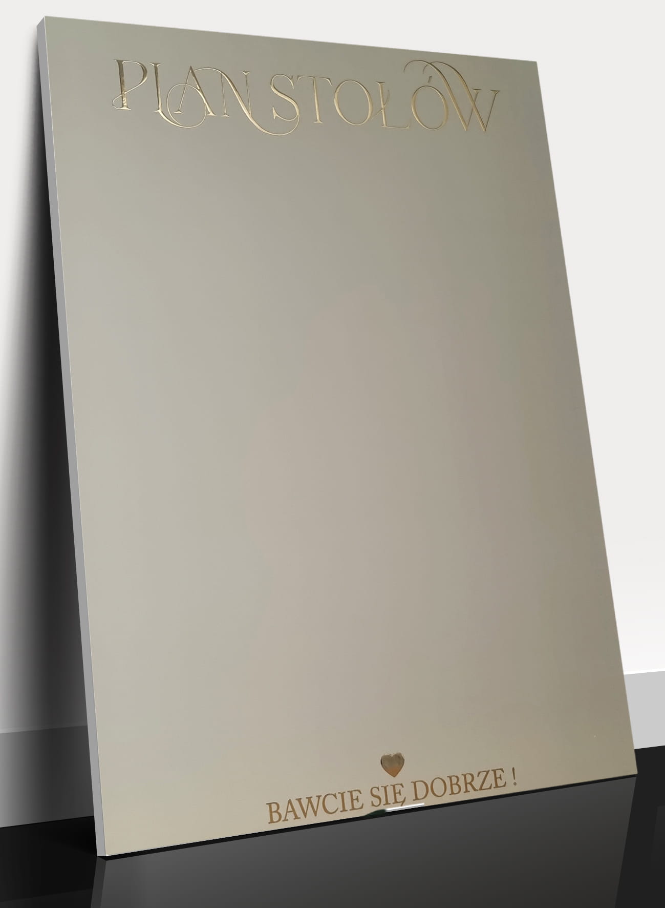 Druk tablicy jest wykonany za pomocą wypukłej folii 3D , która pozytywnie zaskoczy gości weselnych.