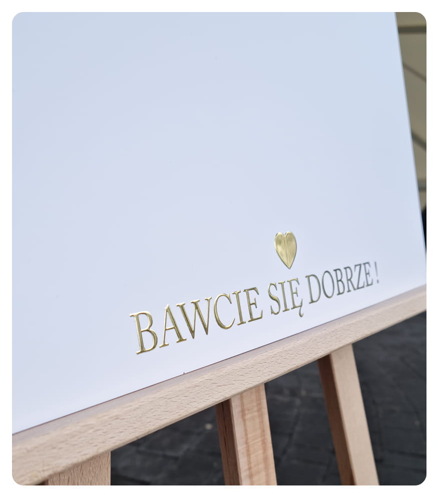 Druk tablicy jest wykonany za pomocą wypukłej folii 3D , która pozytywnie zaskoczy gości weselnych.